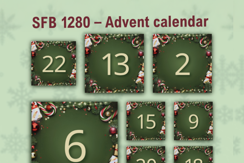 We are delighted to announce our SFB 1280 Advent Calendar! You can look forward to 24 doors full of little highlights, insights, and challenges relating to the SFB. You will find the link to the Advent Calendar in your emails