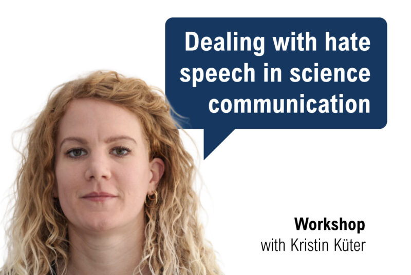 Kristin Küter offers answers in the workshop “Hostilities in science communication? A hands-on workshop on dealing with hate speech and hostility towards science.” Ms. Küter is the managing director and co-founder of Scicomm-Support, a national contact point for attacks and conflicts in science communication. In the workshop, she will present various measures for dealing with these issues and also conduct a practical simulation.